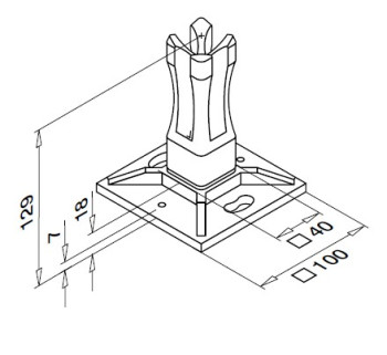 | 134942-040 | Příruba pro sloupek zábradlí, Square Line, trubka 40x40x2 mm, nerez. ocel 304, surová | 569.96 Kč/ks |